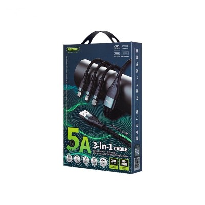 REMAX旋風系列5A快充一拖三充電線RC-199th(藍色)